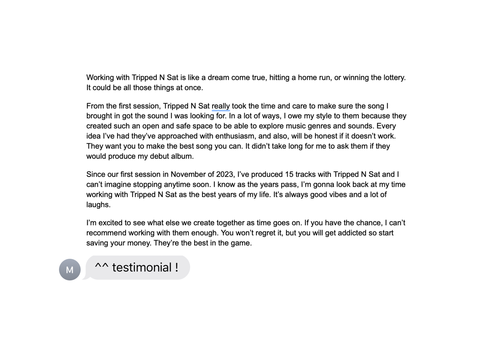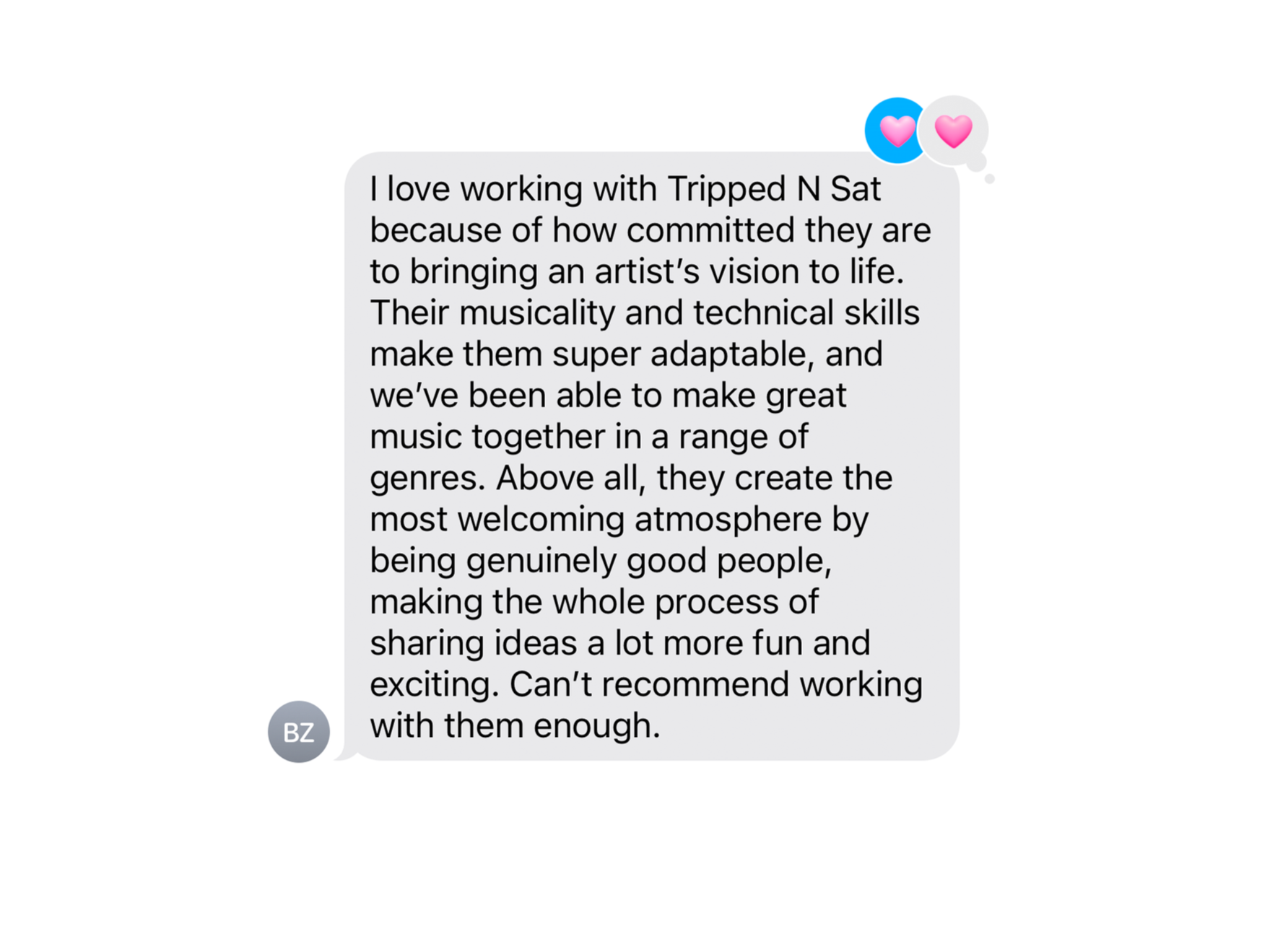 As Tripped N Sat we don’t just make music-we shape worlds. Known for our collaborative process, fast turnaround, and unique ear for blending emotional hooks with experimental elements, we’re the secret weapon for artists looking to elevate their sound and stand out in a saturated market.